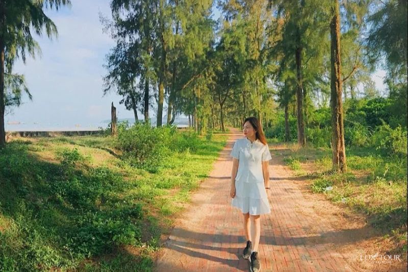 Chiều ngày đầu tiên, sau khi nhận phòng và ăn trưa, du khách sẽ dạo bước trên Con đường tình yêu – con đường lát gạch đỏ chạy dọc bờ biển với hàng phi lao xanh mát. Đây là điểm lý tưởng để chụp ảnh hoàng hôn và tận hưởng không khí biển trong lành.