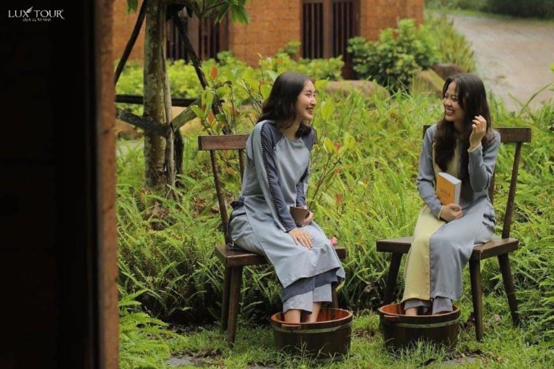 Làng Nương – Nghỉ dưỡng: Không gian yên tĩnh, gần gũi thiên nhiên, nơi du khách nghỉ ngơi sau hành trình leo núi, thư giãn và tĩnh tâm trước khi tiếp tục các hoạt động khám phá ngày tiếp theo.